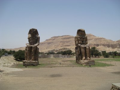 We finally leave Valley of the Hustler (I mean, Valley of the Kings) and make our way to the Colossi of Memnon…which was so neat! I can’t get over how massive their statues are (60 ft tall). These are 2 enthroned statues of Amenhotep III which were originally meant to guard his mortuary temple but apparently didn’t do a good job because it was robbed for building materials by later pharaohs. Reminds me of the Dave Chappelle sketch when he was portraying Rick James putting his dirty boots on Eddie Murphy’s white sofa. Speaking of which…every time the tour guide assistant saw my Dad, he would yell out “EDDIE MURPHHAAAYYY”. LOL. Since he was on the tour, this happened at least 10 times.