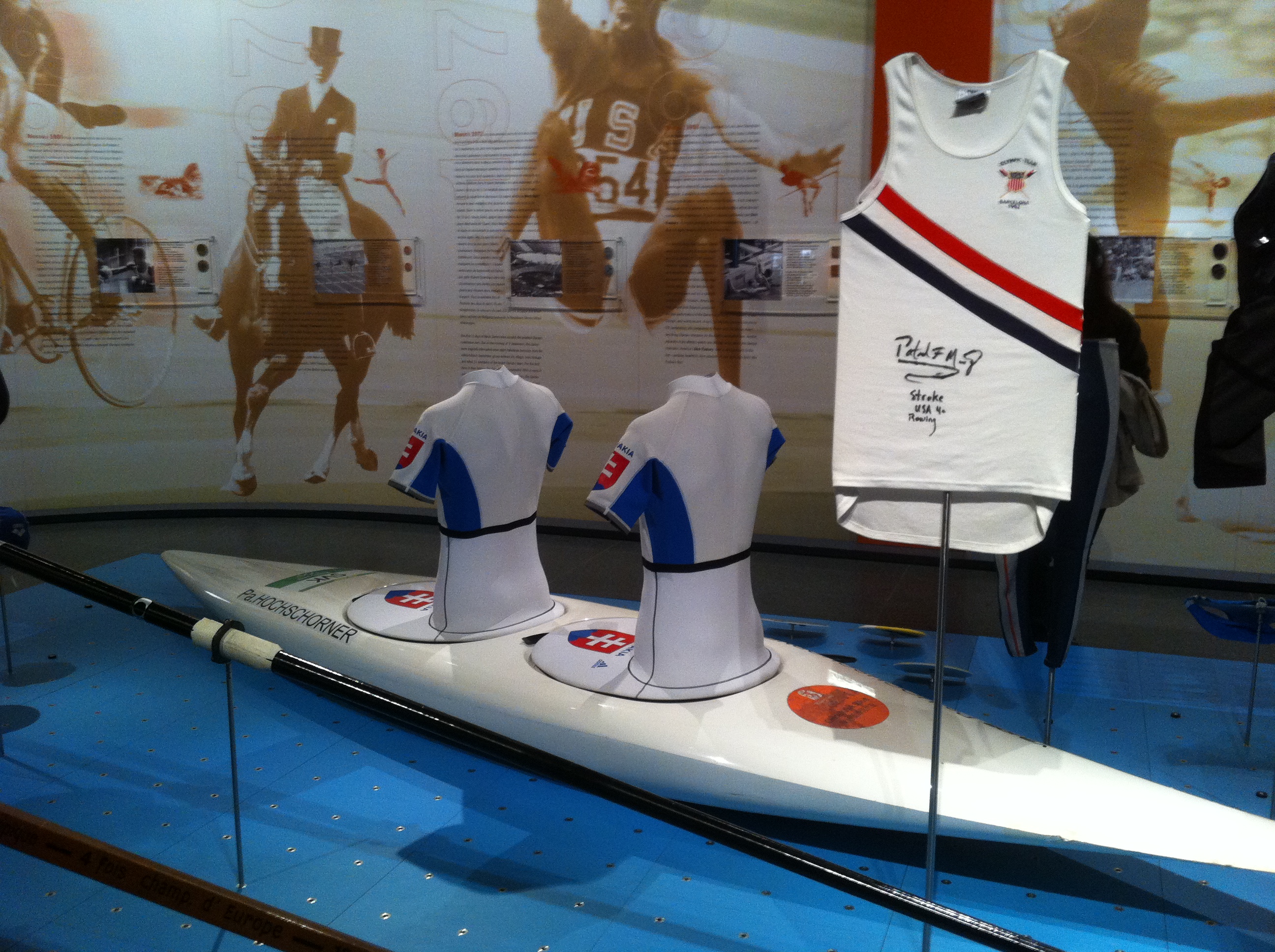 There are a ton of other interesting items from other premier athletes (Jesse Owens spiky jumping shoe from 1936 — a design that led to the first Adidas, Carl Lewis’ shoes from the 1984 Olympics in L.A., etc.). Most of these items has a mini documentary that plays to give you the background on that athlete’s life. Then, there were the general exhibits categorized by sport. It was fascinating!
