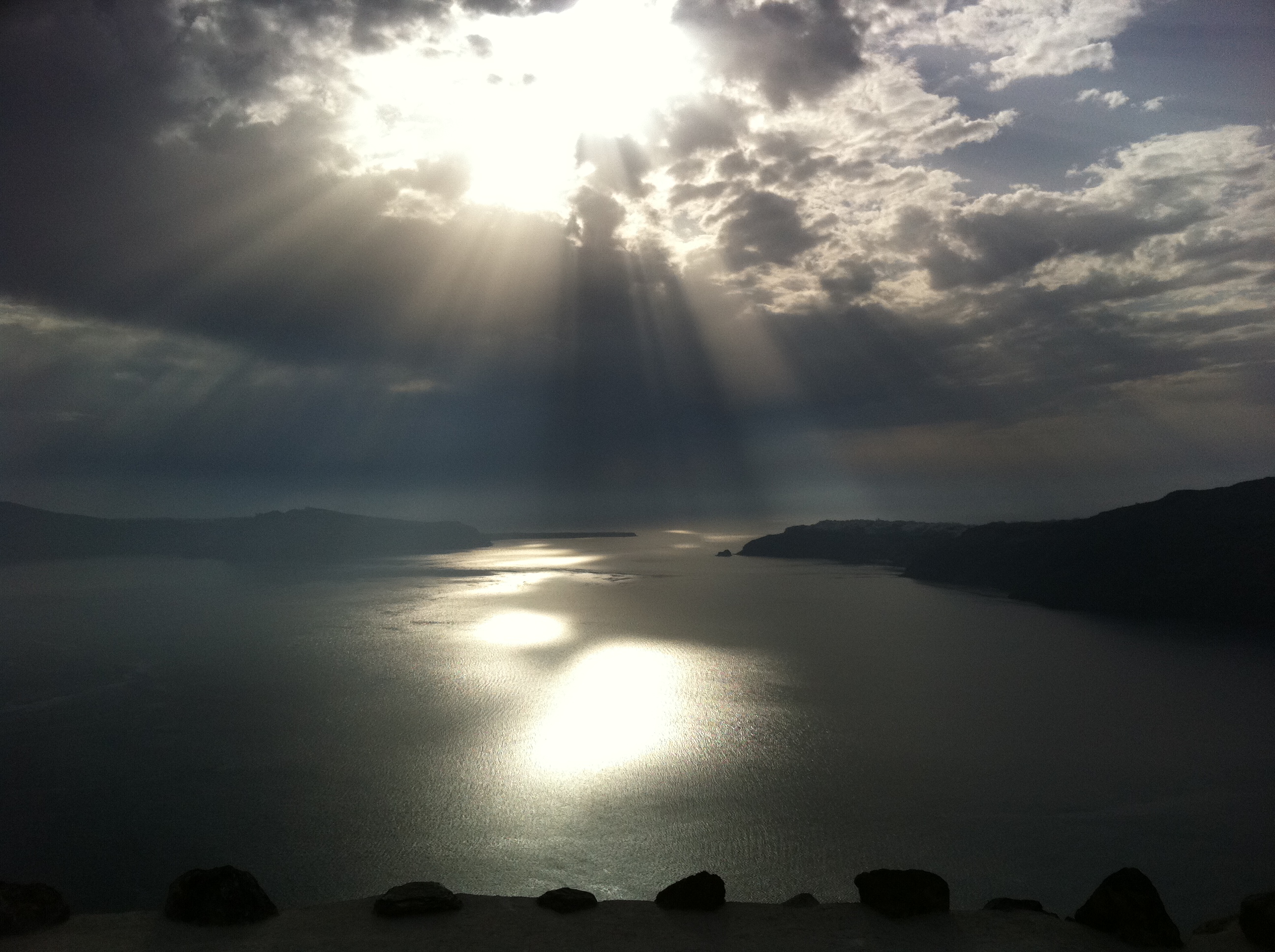 The magical Santorini sunset in the caldera.