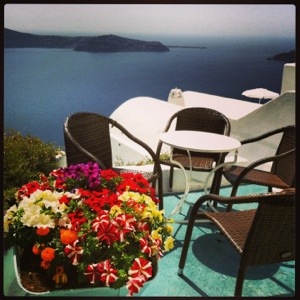 I took this photo while sitting on my balcony at the Rocabella Santorini Resort & Spa.  I sometimes just stare at it for stress relief…and then continue to plot how to get there again this year.  If only I could disapparate…hate being a muggle.  *sighs*