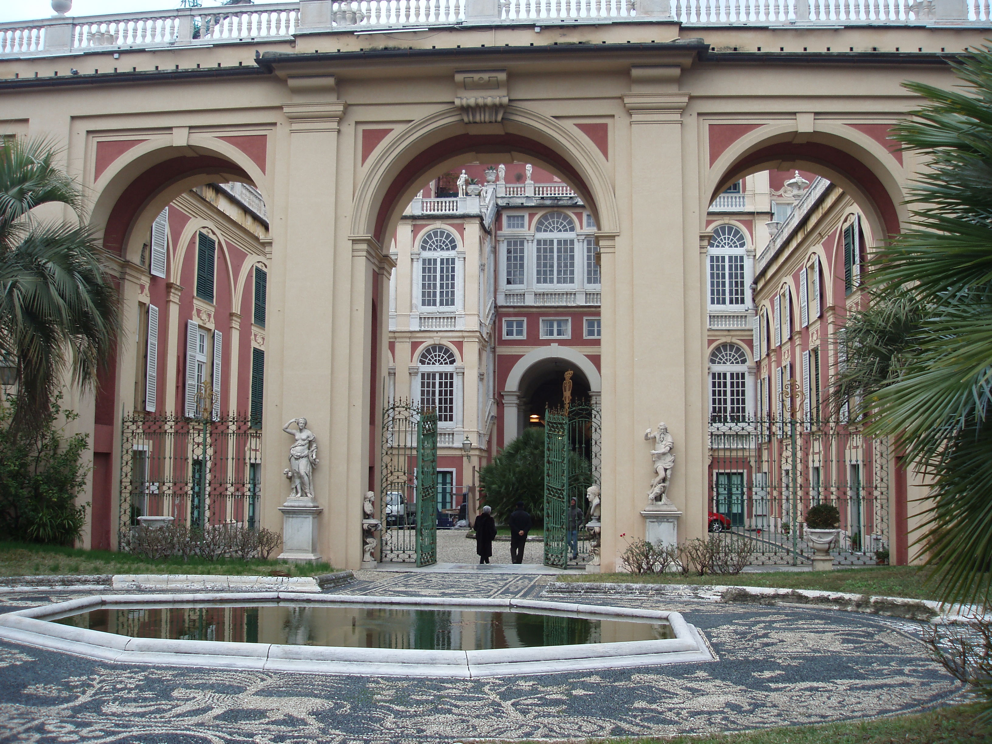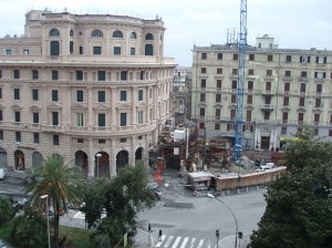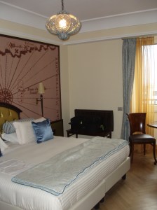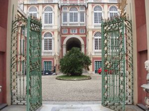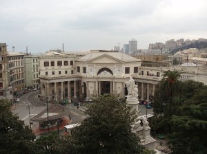 The train ride to Genoa was actually very peaceful. We rode thru the alps and I got to see a lot of snow! A couple of towns looked like something out of a fairy tale. However, once I got to Genoa (or “Genova” as it is called here), things changed. New Nikki is still trying to hang on and be positive. It’s still January! I check into my hotel — The Grand Hotel Savoia (which is actually pretty cool — each room is different and is furnished with antique furniture). You can read my hotel review here. The view from the room is nice too!
