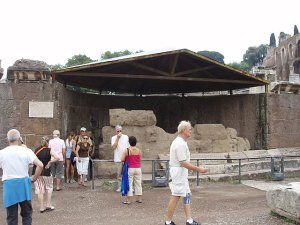 [The audio guide has a British man giving a 20 minute soliloquy about columns and statues and if you look into the sun you can see Caesar or something we cannot find for the life of us. It almost felt like we had a learning disability because the sites are numbered so any 2-year-old should be able to do this.]