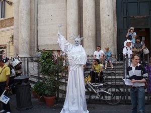 As we leave the Colosseum, I am focused on getting back to the entrance to The Forum so I can get my passport back since I left it to secure the audio guide device. Now, William is all laissez-faire about this as it wasn’t his passport. He offered up job ideas should I not be able to get back to the U.S. (William: That tour guide idea is hot.). We get turned around and I’m looking at the map trying to find the entrance. As we start walking to the entrance, we come across these “mimes” that paint themselves up and stay as still as a statue. Some are better than others. This guy was great!