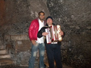 On the way back, there was a guy playing typical Italian songs the accordion. William wanted to get a picture with him.