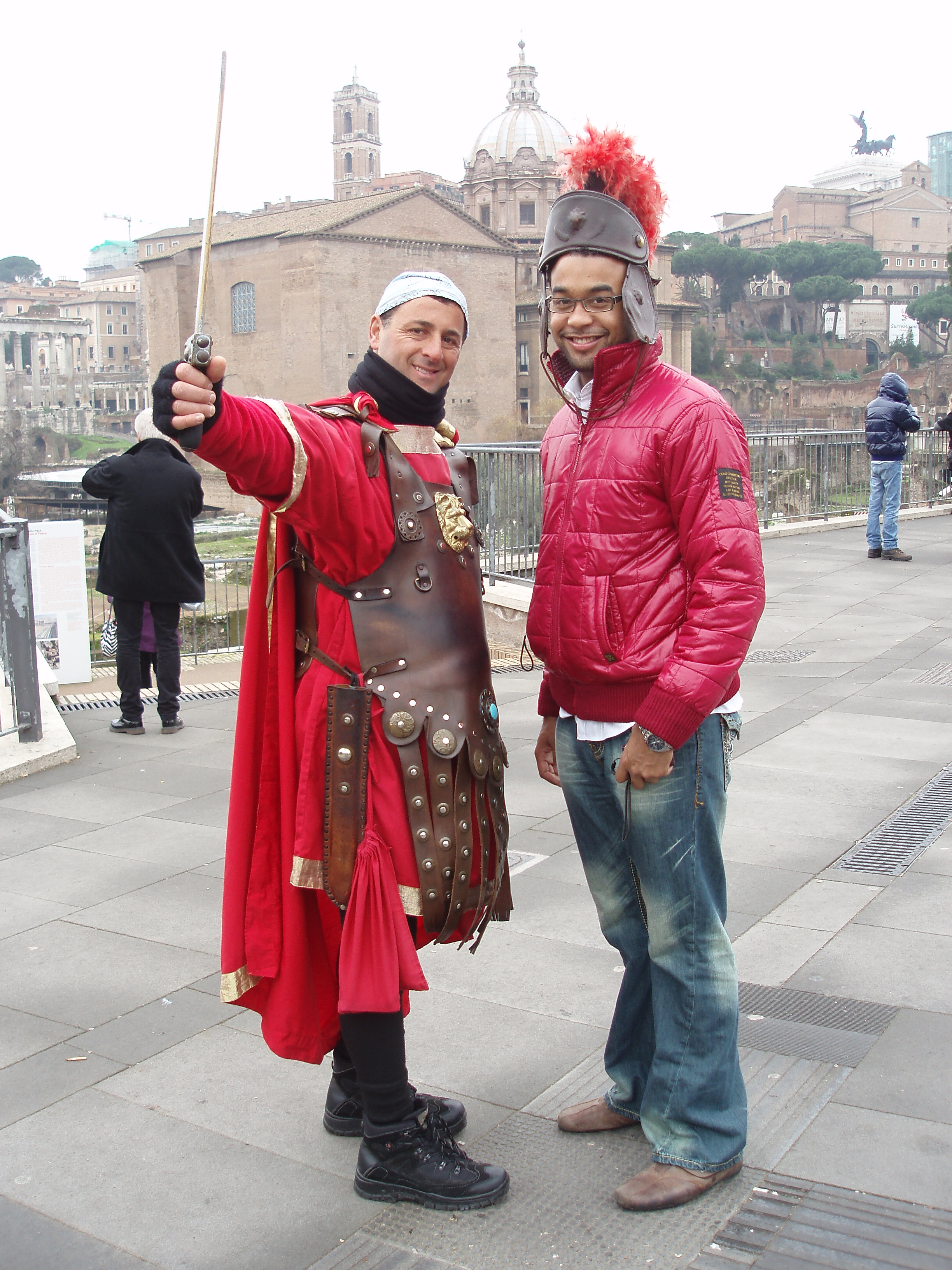 We get up, have breakfast and check-out to start our self-guided “Rome in a Day” power sightseeing tour. We start off by going to The Forum and see a guy dressed up as a Trojan.