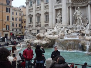 We go inside the Pantheon, look around and take pictures. Now it’s time for a gelato break. Which must occur every few hours or you can get low blood sugar 🙂 After getting my gelato, we walk toward the Trevi Fountain. People throw coins into the fountain to guarantee a return visit. The coins are collected to feed Rome’s poor.