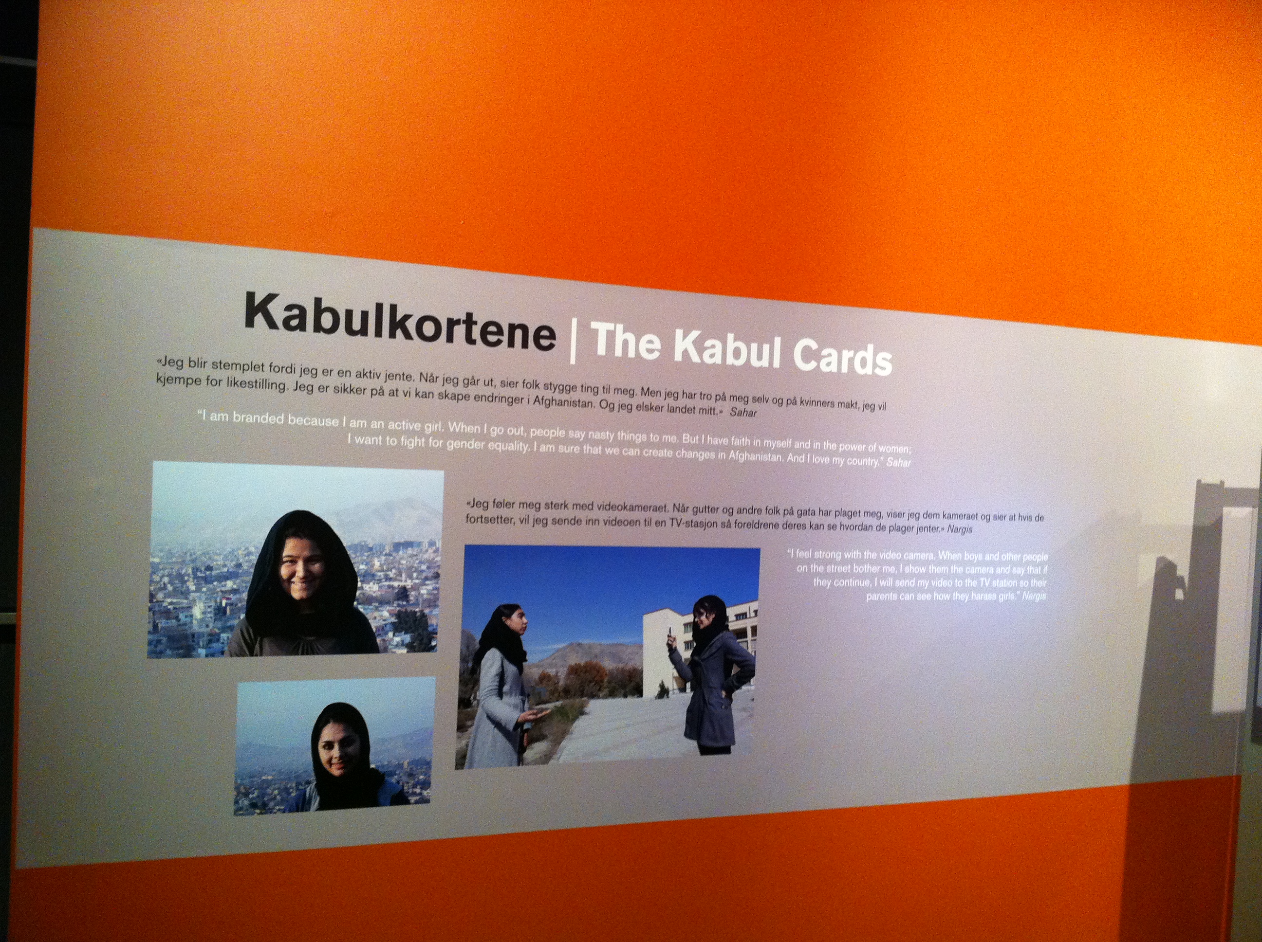 “Anders Sømme Hammer and Christoffer Næss work with three girls in Kabul who want to change their society. Using hand-held cameras, the girls document their lives in the Kabul Cards video documentaries.” (quote from The Nobel Peace Center)