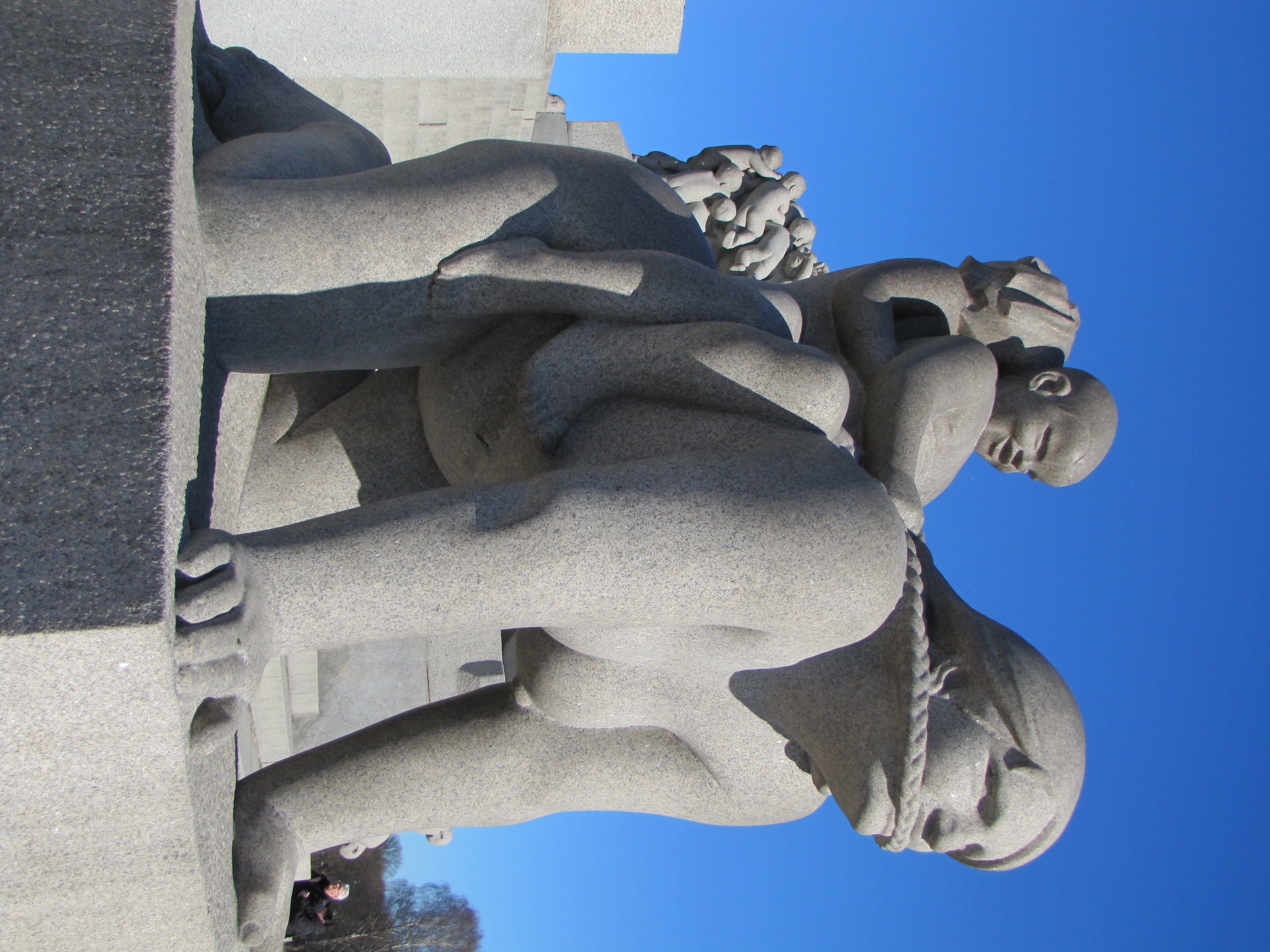 The Monolith Plateau is a platform made of steps that houses the Monolith totem itself. 36 figure groups reside on the elevation bringing with them the “circle of life” message. Access to the Plateau is made via eight figural gates forged in wrought iron. The gates were designed between 1933 and 1937 and erected shortly after Vigeland died in 1943 (source Wikipedia).