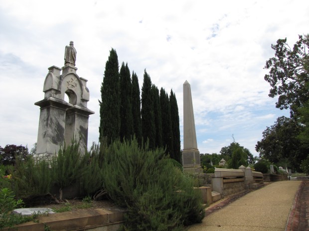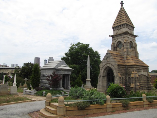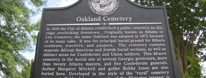 I did spend the afternoon at Oakland Cemetery. “This garden cemetery, founded in 1850, is the final resting place of many of Atlanta’s settlers, builders, and most noted citizens like Bobby Jones, Margaret Mitchell, and Maynard Jackson. It is also a showplace of sculpture and architecture, and a botanical preserve with ancient oaks and magnolias. Here in this peaceful place the full scope of the city’s rich and fascinating history unfolds before you. From a hilltop in Oakland Cemetery, General John B. Hood watched the Battle of Atlanta, and nearby lie soldiers from both sides who died in it.” (source, www.oaklandcemetery.com)