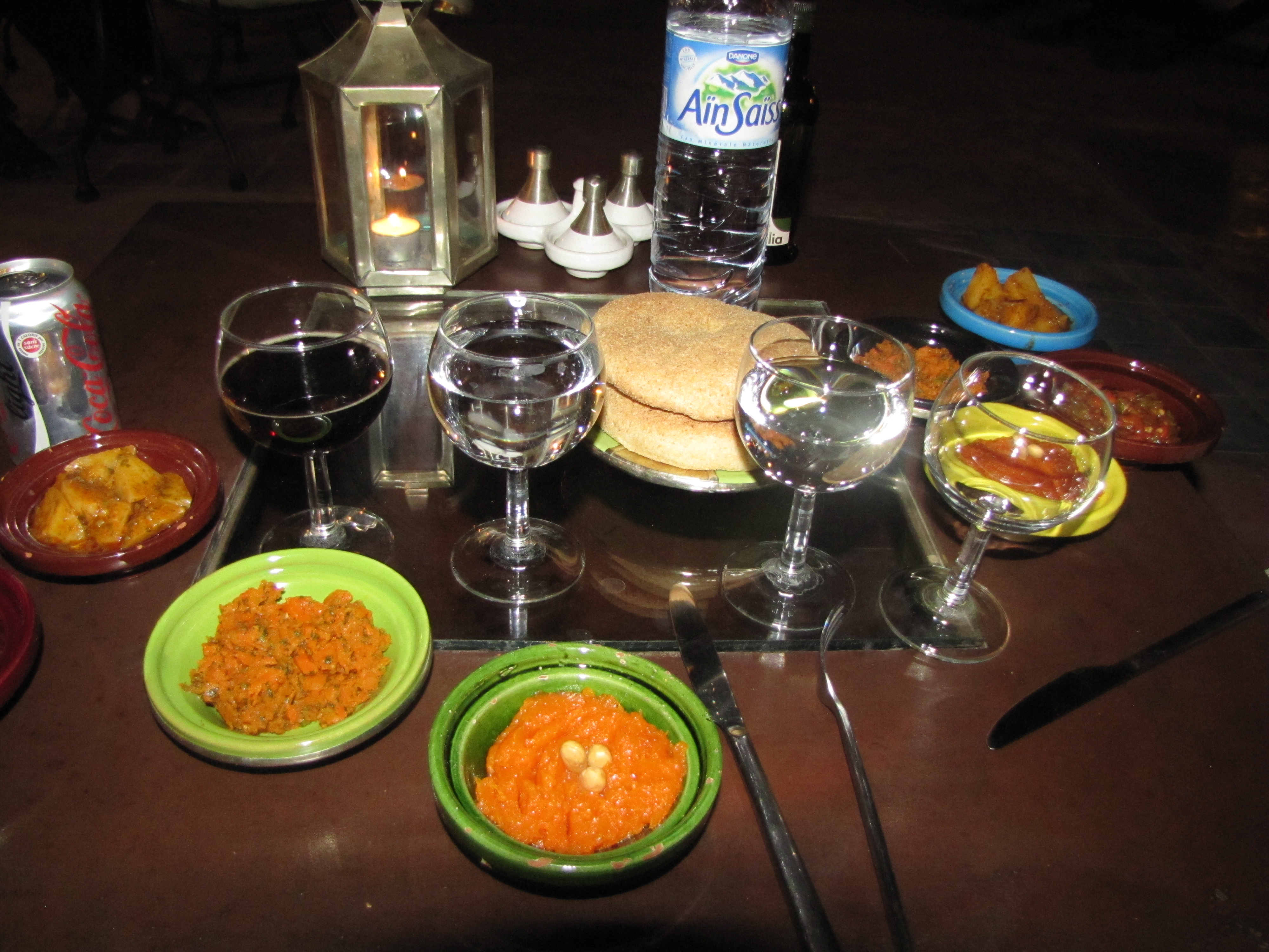 The chef at the Riad Joya is PHENOMENAL! You can dine in their beautiful dining room or on the terrace (which is up several sets of very steep stairs). The riad provides a bountiful breakfast of fruits & pastries (you can request eggs as well) and a daily set menu.